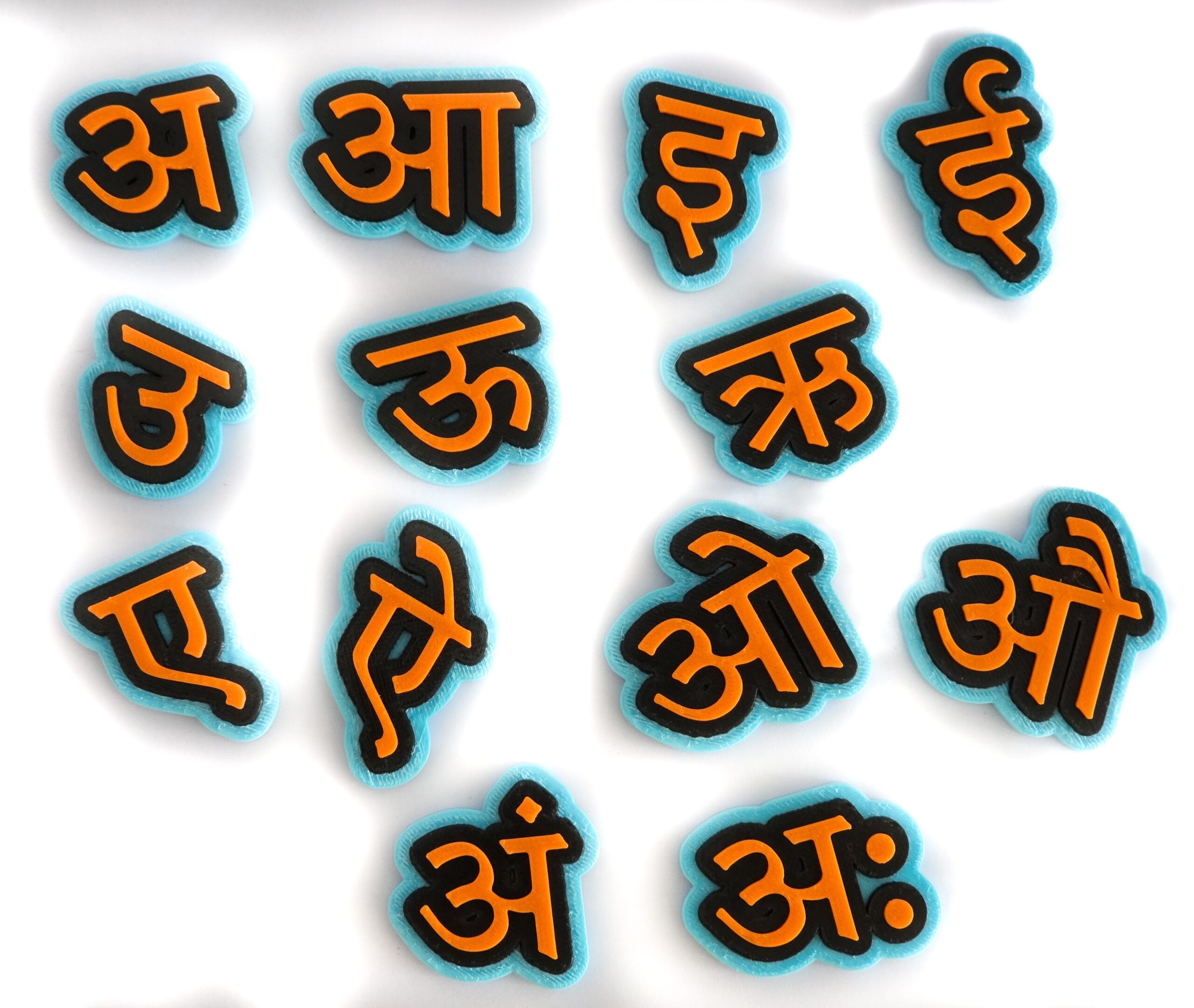 This set contains 13 hindi vowels or Swars of Hindi Varnmala. This also has an option of 36+1 hindi consonants or Vyanjan of Hindi Varnmala.